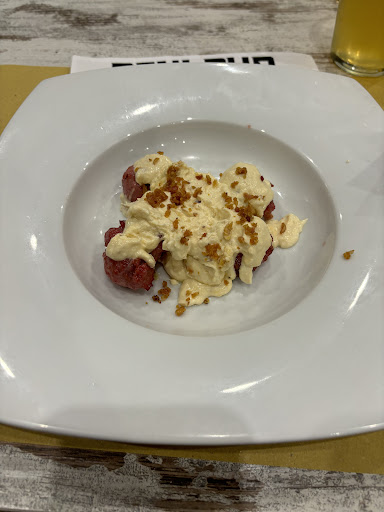 Un lieu rare, entre excellence, sincérité et passion Nous étions trois, venus simplement pour un apéritif, sans attentes particulières, et pourtant, nous avons vécu une expérience absolument mémorable. Dès notre arrivée, l’accueil de Deni a donné le ton : il était seul ce soir-là, mais sa présence, son attention et son énergie ont suffi à créer une atmosphère chaleureuse, fluide et d’une générosité rare. La qualité des produits servis est remarquable, notamment la viande, savoureuse, parfaitement cuite, pleine de caractère. Avec une humilité touchante, Deni nous a dit : « Allez à Verzuolo, là-bas il y a Denis, il vous fera rêver » — et après avoir goûté ce que nous avons goûté, nous comprenons exactement ce qu’il voulait dire. Nous avons commencé avec une Waterloo Blanche bien fraîche, puis nous avons dégusté toute la gamme de bières Wold Top, chacune ayant sa personnalité, bien choisie et servie avec soin. Pour accompagner, Deni nous a proposé un pain frit maison, croustillant, léger, incroyablement gourmand. Il nous a confié qu’il avait appris cette préparation grâce à son ami Nikolin, un entrepreneur albanais avec qui il collabore depuis seulement quelques semaines, mais qui lui a déjà transmis une rigueur et une vision très précise de ce que signifie l’excellence. On sent chez Deni un profond respect pour Nikolin et un amour sincère pour l’Albanie. La suite du repas nous a véritablement enchantés : la sauge en beignet accompagnée d’un aïoli délicat, les fromages fondus de la vallée servis avec des poivrons marinés, et enfin, le plat qui nous a marqués : le Perzola, un burger raffiné avec jambon cru, fromage bleu et poires toastées. Le contraste était tout simplement magistral, digne d’une grande table gastronomique. Pour terminer, nous avons dégusté les whiskys de la maison The Whistler. Chaque verre était proposé à 15 €, et pourtant, nous avions tous la même impression : avoir payé trop peu au regard de la qualité des produits, de la présentation, et surtout de l’accueil exceptionnel. Deni parle un français impeccable, avec une élégance naturelle et une générosité rare. Ce n’est pas seulement un excellent hôte, c’est un passionné, un artisan de l’expérience. Nous avons tous été frappés par le niveau de ce lieu. On se demande encore comment un établissement de cette qualité peut se trouver à Piasco et non dans une grande capitale. Mais Deni nous l’a dit avec une conviction profonde : « Le seul endroit en lequel je crois, c’est la vallée où je suis né. » Et à la fin de la soirée, autour de notre table, nous étions tous d’accord sur une chose : le DENI PUB n’est pas un lieu à essayer — c’est un lieu à...