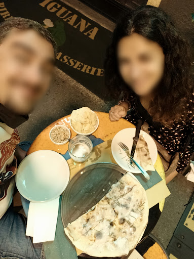 L’Iguana è un locale che in prima battuta non ho notato se non in tarda serata poiché scorto, dalla porta d’ingresso, il bancone ben curato dall’aspetto della fiancata di un galeone. Con tanto di cannoni che spuntavano fuori. Il giorno seguente decido di far visita al posto. Partiamo bene, l’intero arredamento è curato e in stile marittimo, molti oggetti presenti all’interno sono vere chicche di antiquariato. Il personale è molto cordiale e disponibile nonostante la mole di altri clienti presenti. Il menù, semplice nella sua presentazione ma dettagliato, è ricco di pietanze invitanti e particolari che non sempre si possono trovare in altri locali, decidiamo e chiediamo un vino da poter abbinare al pane pizza con calamari, pomodori, pesto (più altri ingredienti che, purtroppo, non ricordo) e delle pappardelle con gamberi, loro, con molto garbo ci suggeriscono un Vermentino Ligure a cui diamo fiducia e di cui non ci siamo pentiti, ed infine, caffè con dolce. Premesso che non sono un tipo da dolci e generalmente ne sono indifferente, devo dire che ho assaggiato un cucchiaino di Tiramisù ed è davvero buono. Il conto tutto sommato non è elevato, circa 60 per due persone tra: due primi, vino, alcune patate al forno, acqua frizzante. Il primo che ha preso l’altra persona però era così invitante che alla fine mi sono pentito di non averlo preso. Pentito a tal punto che il giorno successivo sono tornato lì a cena, solo per quelle pappardelle, e ne è valsa la pena, mentre l’altra persona ha optato invece per delle pennette alla farina di farro con salmone, verdure e panna (la panna è stata un modifica), dopo un’abbondante decina di minuti se non di più di attesa arriva una persona direttamente dalla cucina per avvisarci che le sopra citate pennette stavano arrivando, nel senso che le stavano consegnando al locale poiché fatte a mano da un plausibile artigiano di zona, scena alquanto affascinante quanto rara da vedere (ci tenevo molto a riportare questa cosa perché mi è parso un gesto molto cordiale) . Le stelle che assegno per me sono meritatissime, hanno fatto un ottimo lavoro e continueranno a farlo, non vedo l’ora di...