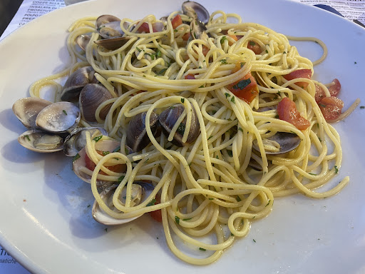 •Il fritto misto (18€ se non erro): freddo, crudo e gommoso. Non è stato mangiato. •melone e prosciutto crudo: melone caldo e amaro con prosciutto crudo salatissimo (sembrava vecchio). Anche questa pietanza non è stata mangiata. •linguine all’astice, dove l’astice non è stato mangiato (vista la qualità del cibo) •maltagliati con scampi calamaretti e zucchine: anche in questo caso è stata mangiata solo la pasta, ma non il pesce •trofie alla genovese: sembrava pesto del supermercato. Non le migliori trofie mangiate.