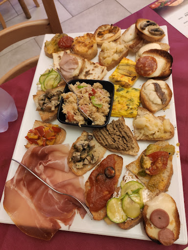 locale un po alla buona... il menu plastificato viene sanificato correttamente ogni volta che i clienti lo usano. la pizza normale é sottile, buona e leggera. La pizza senza glutine é invece tipo focaccia rettangolare, un po alta ma non male (sarebbe utile avvertire il cliente che non sarà tonda come prevedibile). ho chiesto di aggiungere fiori di zucca... e me li hanno messi sopra senza cuocerli (?). l impasto senza glutine buono. l antipasto senza glutine invece non é buono e contiene una scodella di zucchine e pomodori (?) e delle non molto cotte e fredde. Anche il resto non si salva (zucchine, un fungo champignon,)... alcune fette di prosciutto crudo (buono). giudizio complessivo... passabile. giudizio sul...