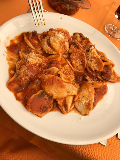 Read moreQuesto ristorante è certamente posizionato al centro di Pietrapertosa, gode di una bella vista dalla Terrazzina che si affaccia su una delle vie principali del paese, il cibo potrebbe anche andare se non fosse che le porzioni sono striminzite e sovrapprezzo... è invece inaccettabile l'accoglienza della signora.... Sembra che siano infastiditi nel ricevere... La signora che ci ha servito al tavolo non ha saputo fornirmi indicazioni sulla presenza o meno di allergeni, inoltre il malumore è tangibile.. Alle domande fatte al momento dell'ordine o non abbiamo risposta o abbiamo ricevuto risposte sbrigative e ancora una volta non molto cortesi...Come se non bastasse ci siamo trovati a mangiare su un tavolino sgangherato di plastica... Anche il cameriere giovane non si salva, non è scortese (almeno lui) ma ci ha portato del vino inadatto alla cena, dolcissimo e di scarsa qualità..adatto al dessert e non al pasto...per dirla tutta imbottigliato e senza etichetta... A fine cena la signora è tornata sorridente a chiedere se fosse tutto ok... Almeno stavolta un sorriso 😅 sarebbe stato meglio ricevere sorrisi dall'inizio per rendere la permanenza al ristorante più gradevole...per non smentirsi anche al momento del pagamento, mentre andavamo via si è lasciata prendere da commenti e borbottava... Praticamente maleducata, inadatta al contatto con il pubblico... Una persona così dovrebbe al massimo portare un piatto al tavolo...