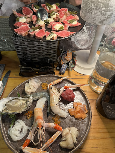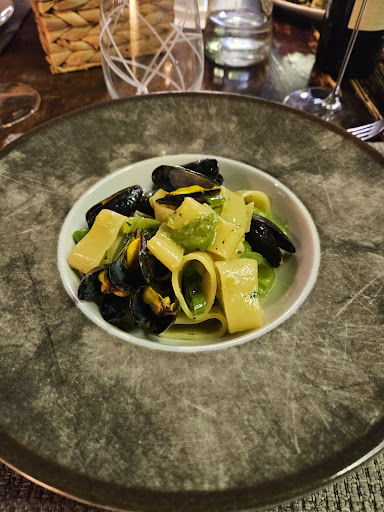 • Non c'era nessuna insegnia,si facceva fatica a capire dove era/trovare il posto. • Il menu non mi piacceva a affatto,telo dano in mano con un foglio/foglio cartoncino A4,che aparer mio,in un locale cosí chicoso non ci sta,senza descrivere per bene i dettagli,sopratutto nel menu che nemmeno la lista delle bevande...e i prezzi li trovo un'pó esagerati,sopratutto il coperto 3,50€ quello è troppo.Mai pagato in tutta Italia un coperto a 3,50€. • Il probietario del ristorante aveva degli occhiali scuri,che sembrano che porti gli occhiali da sole(se mi sbaglio,allora mi scuso in anticipo). • I camieri sembravano assenti e mi è venuta anche un'pó d'ansia,quando li ho visti muoversi quando,non sanno cosa fare,quando non hanno niente da fare + anche quando erano fermi li,che controllavano(giustamente,li non mi metto a discuttere) + puoi il cuoco che è venuto fuori a preparare il piatto davanti a tutti(li non ho da obiettare,lo trovo molto professionale ect.),con i camierieri che stavano li in piedi,mi sentivo troppo osservata + quando ho guardato il cuoco come stava preparando il piatto,mi ha guardato con uno squadro un'pó negativo,almeno cosí mi è sembrato...comuncque i camierieri,anche se sembravano assenti e mi mettavano un'pó d'ansia,anche per l'osservazione...erano molto gentili e rapidi.Comuncque pottevano anche venire prima,a chiedere,se è tutto apposto...invece dopo,quando si ha finito di mangiare. • La cosa peggiore in un locale di classe come questo,era il cane,Non ho niemte contro i cani.Il cane anche se era bravo,non deve esserci in un locale di classe.Il cane seguiva il probiertario fino in CUCINA è puoi si è anche fermato ai tavoli,spreando di ricevere qualcosa da mangiare dagli clienti,che mangiano.I camiereri dopo ca. 15/30min. lo hanno chiamato,ma non obediva agli camieri.Il probietario aveva visto il suo cane,che era vicino al tavolo degli clienti e non lo ha mai chiamato...li sono...