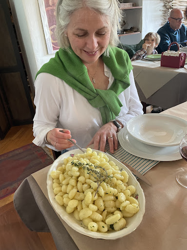 Molto carina la presentazione delle api, degli animali, tra cui tante specie di galline & co., traspare la passione. Bello spazio per far giocare i bimbi, che tra una portata l'altra si divertono a far visita alle galline, quaglie, oche... Non tanto grande, quindi perfetto per monitorare a distanza :-) In merito al cibo tante piccole porzioni: 7 antipasti vegetariani, 2 primi, 2 secondi, dolce,caffè e vino in caraffa= 30€. Le verdure dell'orto sono le protagoniste, sapori non tanto decisi, piuttosto delicati, ma buoni. Il mio piatto preferito sono stati i primi: maltagliati con asparagi selvatici e ravioli di verdure al sugo. I secondi di carne: fettina impanata (tanti nervi) e coniglio alla ligure rivisitato (abbonamento olive taggiasche con miele discutibile) tante ossa di costine... poca polpa nel vassoio (eravamo 6 adulti, mi sono servita per ultima e rimanevano 1 pezzo dove sembrava ci fosse polpa, invece era solo osso e 3 costine con tante olive...) peccato perché lo sforzo del cuoco non si è potuta apprezzare. Infine torta alla crema di castagne buona. Ultimo dettaglio sarebbe apprezzabile un'attenzione diversa per i bimbi più piccoli anche al ristorante, visto che la fattoria didattica ha loro come target 😉 Difficilmente i bimbi hanno i nostri tempi e la voglia di mangiare tutti gli antipasti, etc. A noi per 5 € è arrivata una porzione di ravioli, che poi abbiamo scoperto essere per 2 🙄 ma in realtà era per uno e non è stato sufficiente per sfamare nostro figlio di 3 anni🤣. Vabbè si può...
