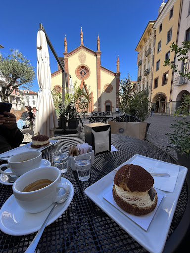 Ore 16,20 del pomeriggio di Pasquetta ci siamo seduti nel dehor in piazza Duomo e dopo 20 minuti, arrivano a prendere le comande, mettendo subito le mani avanti e denunciando carenza di personale. Nel frattempo passano nostri amici dicendoci che si erano appena alzati da un altro tavolo dopo oltre 30 minuti di invisibilità... Dopo 20 minuti dall'ordinazione, arriva un "parziale" delle cose ordinate. Intanto mi arriva un marocchino in tazzina da espresso e già mi girano le ...... Un cucchiaio di panna da dividere per 2 caffè con panna.. Biscottini ordinati e mai arrivati. In attesa di completamento dell'ordine, passano altri 20 minuti e decidiamo di andare via. All'atto di pagare, dentro il locale, 4 camerieri giovincelli se la ridevano allegramente, sghignazzando del fatto che non avevano più gelati da servire alle persone ai tavoli e anche all'asporto mandavano via la gente. Faccio rettificare il conto e pago solo quanto consumato.... Non basta celarsi dietro un nome per fare qualità. Questo servizio è stato più ridicolo che inesistente. Da pinerolese mi sono vergognato. Mi sono immaginato persone che da fuori vengono a visitare la nostra città e vengono trattati così.. State chiusi che fate più...