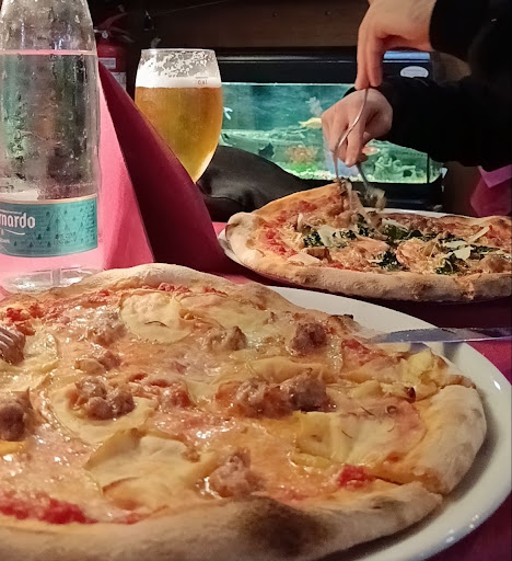 Read moreSabato sera, locale pieno, due tablvoli fanno il giro pizza.. il nostro tavolo siamo in 15, facciamo giro pizza, seduti alle 20.00, prime 4 pizze arrivate alle 21.15/30, poi basta.. chiesto alla cameriera che riferisce alla proprietaria, arriva la proprietaria prendendoci in giro. Bene ci alziamo in 4 e ce ne andiamo via. Ci fa pagare il conto intero 18 euro per 2 fette di pizza e una birra media a testa. Ah serata karaoke, mio dio... e non aggiungo...