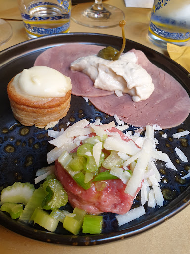 Read moreLocale nel centro storico di Pinerolo. Si trova sotto i portici. Ha tavoli sia all interno che all esterno sotto i portici che fuori, lungo la strada su un rialzo, quindi a "cielo scoperto". Fuori erano disponibili anche delle coperte. Personale giovane ed educato. Fanno spesso eventi, vedevo le varie locandine affisse al muro. Si può sia bere che mangiare. Noi abbiamo mangiato sfruttando il menù previsto per l evento della maschera di ferro. 25€ a persona, con calice di vino incluso, prevedeva un antipasto composto da 3 piccole portate, 1 primo, 1 secondo ed 1 dolce. La qualità degli ingredienti è molto buona....