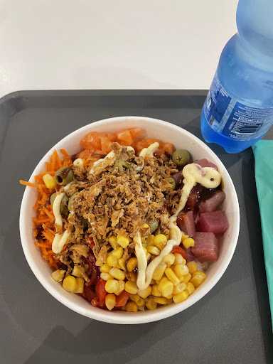 Per quanto riguarda il cibo, mentre il couscous e il riso erano accettabili, la qualità del pesce era lontana da quella che ci si aspetterebbe a questo prezzo. Avendo mangiato in molti negozi di poke bowl, posso dire con sicurezza che questo non vale il vostro tempo o denaro. Consiglierei di andare altrove per un'esperienza migliore e...