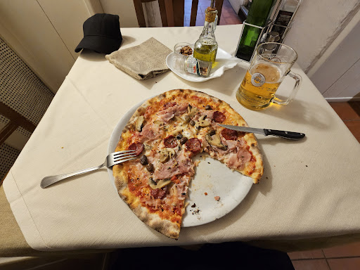 Update 2025: still nice food and good service. We, this year 3 persons, all enjoyed. Nothing to claim. 2023: At first, one of the best pizza, I ever had! Crispy, thin, nice taste and good filled. First I did not want take a picture. But... - The service was very good and friendly as well. Some write here about unfriendly boss. Yeah, he is a bit like a Patrone, but not really unfriendly. Atmosphere of the restaurant is dominated by the big stone oven with open fire inside. I found the restaurant and tables clean. Not too tight, not too wide. I was there at 7 pm, when they opened, the only guest. But half hour later, nearly all tables occupied. Better to have a reservation! Price of the pizza, for what I got, unbearable! Therefore the beer a little expensive. But that not really count. I gave a more, than good tip, ...