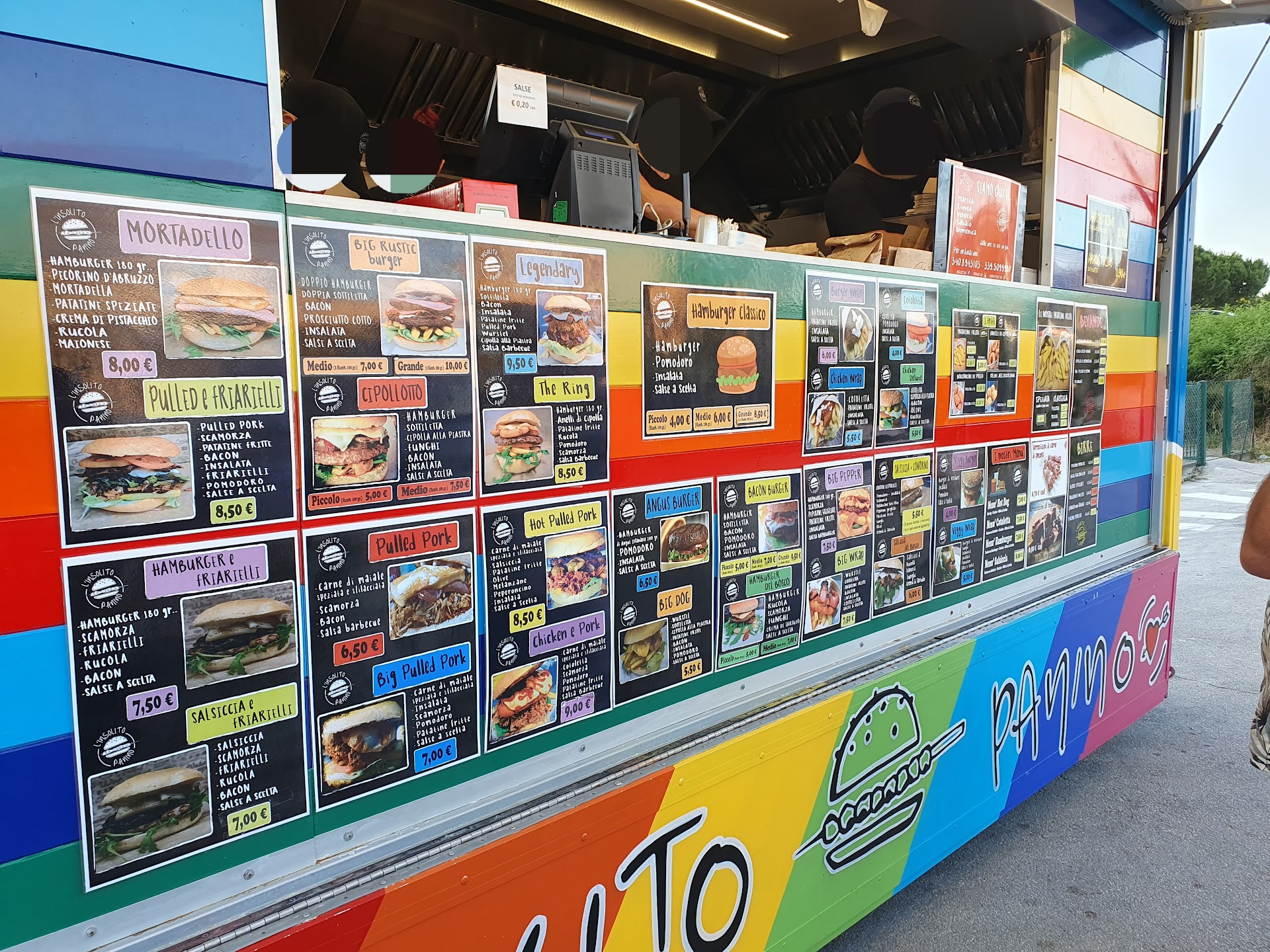 Read moreCamioncino itinerante conosciuto durante una gara. Panini strepitosi con abbinamento degli ingredienti molto equilibrato. Ottima la scelta di mettere direttamente le foto dei panini con le rispettive farciture e i prezzi stampati nella parte laterale del furgone, in modo che il cliente metre sta in fila può leggere e scegliere in tutta tranquillità il panino che vuole. Qualità del cibo eccellente e veramente l'imbarazzo della scelta: dalla cotoletta, all' hamburger di angus, al pulled pork. Unica pecca? Te ne vai con il rimorso di aver scelto un panino e non aver assaggiato gli altri perché li mangeresti veramente tutti. Ottime anche le patatine fritte. Servizio gentile e veloce nonostante la grande affluenza. Assolutamente da...