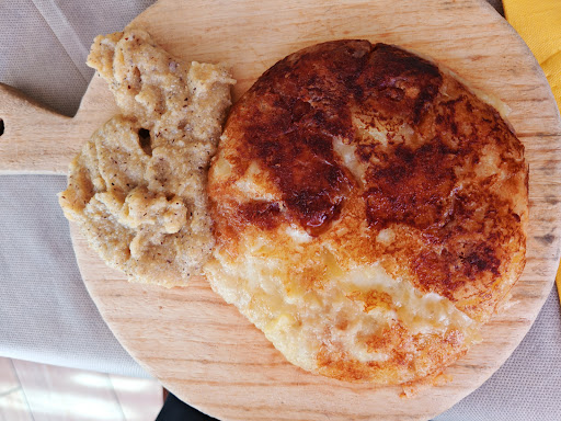 In questo momento di tristezze e restrizioni, di confinamenti e di esclusioni, brilla la solare gentilezza ed accoglienza del Personale addetto a servire a tavola. Ottima la cucina, sia il "menù dell'operaio" (di cui ha usufruito mia moglie), a prezzo fisso (€ 11,00) completo, semplice ed abbondante, servito senza chiedere tessere di appartenenza alla categoria, sia quello alla carta dove eccellono le pietanze friulane. Ottimi i ravioli (i mitici Cjalsons), magico, incentivato e gustosissimo il frico alle cipolle rosse, ricoperto di San Daniele. Il tutto innaffiato di Cabernet Franc (privo, però, del suo tipico e ricercato sapore di peperoni verdi). Se posso dare un voto è:...