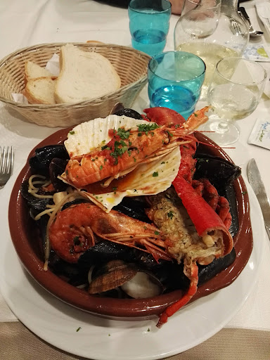 Ho pranzato con la moglie in questo locale. Devo dire che non siamo stati per niente contenti. Abbiamo preso entrambi 1 antipasto di pesce, il piatto si presenta bene, ma poi messo in bocca il cibo si sente che il pesce non è per niente fresco! Ho chiesto alla cameriera come mai nel menù non risulta il risotto di pesce, mi ha risposto che il risotto è fuori menù, si fa solo su ordinazione di un gruppo di persone! Mi propone di chiedere in cucina se c'è qualche porzione avanzata! Rispondo No! No! Per carità! Mi chiedo come si fa a fare una proposta del genere! Il risotto deve essere fatto al momento e servito al dente. Alternativa prendiamo una una scogliera, qui subito dubitiamo della bontà! Troppo pomodoro e pesce anche qui non fresco gamberoni verdi, cozze secche non carnose, e poi gli spaghetti stracotti! Mi sono permesso al cameriere di farlo presente in cucina. Volevamo prendere qualcos'altro ma nauseati abbiamo...