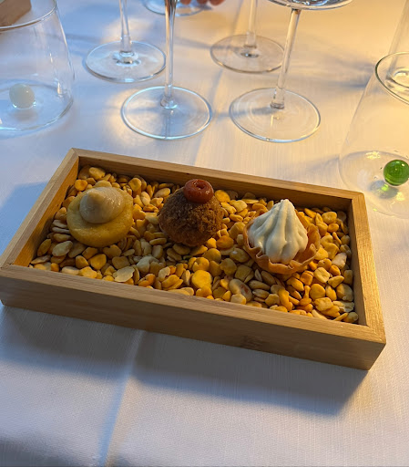 We had a wonderful lunch here while in Tuscany. The amuse-bouche was fantastic! Three little bites of different flavors to whet your appetite. The starter was chestnut farinata with red shrimp which we split with no problem & the chestnuts added a little complexity to the taste. The lemon linguini with oysters & raspberry was my favorite! Then the monkfish medallion was wonderful. Highly recommend & our server was so kind even though we didn't speak much Italian. He even let us buy a bottle of the olive oil which was wonderful with the rustica bread. The tables are artwork & shown in...