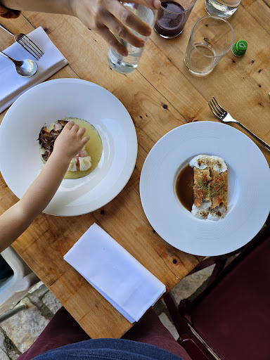 Recensione Giugno 2021: Devo dire che ero partito prevenuto: dalle foto in giro e dall'accoglienza, ho immaginato uno di quei posti dove ti tocca aprire un mutuo per vedere scenografici piatti semivuoti, per poi tornare a casa e mangiare qualcosa. Sbagliavo quasi completamente. La scenografia era ottima, ovviamente: l'accoglienza è impeccabile, l'ambiente non è enorme ma è piacevolissimo e pulitissimo, con una bella musica di sottofondo, vero sottofondo, che ti accompagna ma non ti impedisce di sentire cosa dicono i tuoi vicini (tipo discoteca o pub, cosa che ho sempre odiato). Il servizio, perfetto: camerieri sempre con mascherina, ben tenuti, anche simpatici, che hanno cambiato le posate ad ogni portata, portate che, tra l'altro, sono sempre arrivate tutte insieme, nessuno ha dovuto dire a denti stretti: "comincia, altrimenti ti si fredda...". Le portate, e qui viene il bello: tutto era eccezionale, dall'antipasto al pane al caffè. Piatti ben curati, accostamenti di organolettici (parolona) insoliti ma gustosissimi: sia dal punto di vista del sapore ma anche della consistenza, veramente ogni ingrediente era in armonia con gli altri. E gli ingredienti erano tutti di ottima qualità , e (quasi?) tutto fatto da loro, anche un pane meraviglioso, cosa che adoro ma che soprattutto al centro-nord è una rarità . Tutto questo, naturalmente, ha un prezzo: antipasto, primo, dolce e caffè, niente vino ma sicuramente sazi a fine pasto, 50 € a persona. Ma, detto da uno che apprezza le trattorie, ne vale assolutamente la...