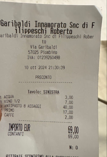 Su consiglio di una amica di Piombino, abbiamo deciso di pranzare in questo Ristorante, nell'area pedonale del centro storico, a pochi passi dal Comune. Il locale, pur essendo in piena zona turistica, è molto accogliente, con luci soffuse che creano una atmosfera di intimità. Veniamo subito accolti da una gentile signora che ci accompagna al tavolo che avevamo prenotato, illustra le modalità con cui poter ordinare e specifica che le pietanze disponibili sono esclusivamente in base al pescato del giorno; sono disponibili Antipasti con 4 o 8 Assaggi, Primi di cui si possono anche ordinare 2 o 3 Assaggi e Secondi di cui sono disponibili 2 Assaggi. Il resto del Menù è composto dalla Carta dei Vini, la più vasta che abbia mai tenuto in mano, con prodotti vinicoli provenienti da ogni regione ed anche da altri paesi, europei e non. Per gli Antipasti abbiamo scelto l'opzione con 8 Assaggi (4 freddi e 4 caldi) e subito sono arrivati al nostro tavolo i piatti freddi che comprendevano Baccalà con Maionese all'Aglio, Tonno Ala Lunga con Crema di Melanzane, Carpaccio di Ombrina ed Insalata di Polpo ed erano uno più buono dell'altro. A seguire ci sono stati serviti gli antipasti caldi, con Pesce Spada Fritto, Razza con Verza, Moscardini con Cavolo Viola ed Arselle al Sugo, ed anche questi ci hanno colpito per la sapidità del pescato e gli abbinamenti proposti; i piatti serviti vanno ad esaurimento, in base alla quantità disponibile, e possono variare nel corso del turno, ad esempio ai nostri vicini sono state servite Seppie e Ceci al posto dei Moscardini e ad un altro tavolo un Crostino con Uova di Pesce. Conclusi gli Antipasti abbiamo preso 2 Assaggi di Primi da condividere, che poi ho dovuto mangiare esclusivamente io dato che la mia compagna era già piena, ed abbiamo optato per Spaghetti con Lupini e Crema di Pistacchio e Zuppa Corsa, la loro specialità; quest'ultima molto particolare per la sua preparazione nel piatto, con crostini di pane da mettere sul fondo per poi cospargerli con Salsa Speciale (a base di Maionese, Pomodoro Secco e Peperoncino) e Formaggio ed infine versarci sopra la Zuppa. Come Secondo ho ordinato i Calamari alla Diavola e, per quanto semplice, è il piatto che più ci ha colpito, con una preparazione che esalta al meglio la freschezza del pescato; alla mia compagna appena l'ha assaggiato si è risvegliato l'appetito e ne ha preteso metà porzione, finendo col fare scarpetta con il sughetto così sfizioso con quella sua nota piccante. Per concludere abbiamo scelto come dolce da condividere il babà con Crema di Ricotta e Composta di Mandarino ed anche questo spicca per qualità degli ingredienti utilizzati, finendo col pentirci di non averne ordinato uno a testa. Ottimo anche il calice di vino preso per pasteggiare, un bianco fermo della zona con Vermentino ed altre uve autoctone, così come i caffè serviti a conclusione del pasto; ogni singolo aspetto del pranzo è stato perfetto, compreso il servizio ai tavoli con camerieri simpatici, professionali e pronti a soddisfare le esigenze del cliente, informandosi sempre su eventuali allergie, intolleranze o ingredienti non graditi. Una semplice eppur stupenda esperienza culinaria, vale sicuramente ogni soldo speso; la prossima volta che mi troverò a Piombino o dintorni già saprò dove...