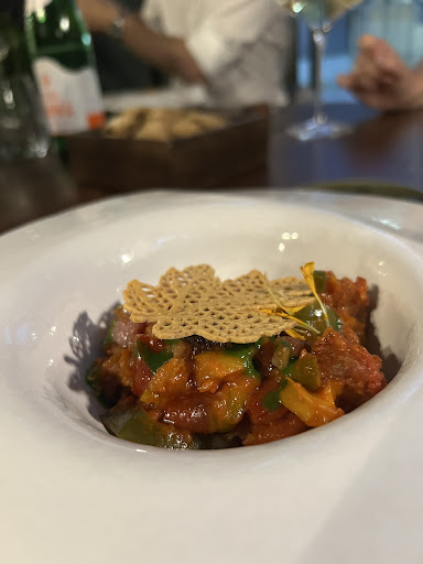 Read moreLa gentilezza e il sorriso di Giulia, che ci ha accolto Domenica per il nostro pranzo, sono subito stati un ottimo biglietto da visita. Locale moderno e accogliente, fine e raffinato, molto pulito, cucina a vista, le poltrone danno una buona impressione di comfort durante tutta la permanenza. Un locale di livello all'altezza delle aspettative: eleganza e raffinatezza sia nella location, che nelle portate, e da non sottovalutare la professionalità simpatia e cordialità dei titolari e dello staff. Buona la loro carta dei vini, e brava Giulia nella spiegazione della nostra scelta: abbiamo preso "Anteprima", un Cortese bio del 2022 dal colore e aroma sublimi. Ottima la mano dello chef sia nella preparazione che nella presentazione dei piatti: cibo ottimo, pane ai grani antichi ( era talmente fresco e irresistibile, da mangiarne abbondantemente con la pasta, per la scarpetta sulla crema di fave e formaggio di pecora ! ); servizio impeccabile. Lo consigliamo vivamente e ci...