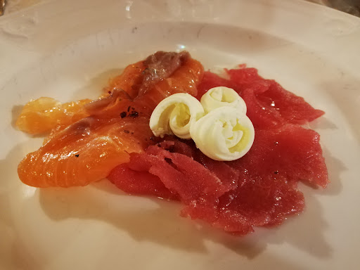 Read morePremetto che una decina d’anni fa ero un assiduo cliente, ero là tutti i fine settimana, poi x cambio regione non ci son + andato fino a stasera, ma la delusione mi ha lasciato l’amaro in bocca. Ho prenotato x la cena, è una volta seduti mi arriva l’ antipasto senza nessuno mi abbia chiesto cosa volevamo da bere. Ci portano un antipasto lesso, io chiedo il crudo e mi arrivano 5 scampi, e 4 fettine sottili di cui 2 di tonno affumicato, e 2 di pesce spada , resto basito x l’esiguità del piatto, chiedo al titolare e mi dice che ha finito tutto. Era esiguo anche il lesso, intanto il titolare mi propone un risotto che hanno giusto pronto, e a quel punto mi cadono le braccia e non vedo l’ora di uscire dal locale. Premetto che mi son seduto alle 20 e alle 21 ero già in auto. In pratica si accettano le prenotazioni x riempire la sala, ma...
