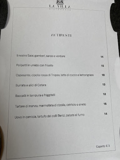Read moreLocation eccezionale con parco e possibilità di mangiare all'aria aperta. Abbiamo prenotato con The Fork per tre persone e la prenotazione è stata subito accettata. Arrivati al ristorante il maitre ci ha accolto accompagnandoci al tavolo e servito dell'acqua. Senza attendere ci ha portato i menù e presentato la proposta culinaria. Abbiamo iniziato la nostra esperienza con un entrée particolare. A seguire abbiamo preso tre primi, un mezzo pacchero cacio e pepe con tartare di salmone selvaggio, degli gnocchetti di patate con vongole e bottarga di muggine e dei tubetti alla genovese di mare. Tutti e tre hanno soddisfatto le nostre aspettative tenendo conto della qualità del locale. Abbiamo proseguito poi con una grigliata mista per tre proposta dal maitre con la disponibilità del pesce del giorno. Una bottiglia di vino, caffè ed il conto per terminare il pranzo.