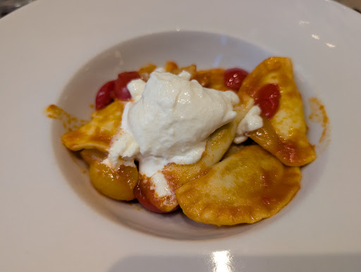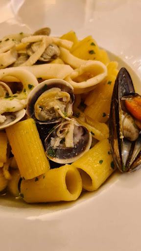 We went for dinner one evening and tried a few menu items, some out of curiosity and others well known. I had Ravioli in shrimp ragu and grilled octopus with pine seeds on ruccola bed and my wife had Tagliata di manzo with ruccola and parmesan. For my own taste, I would have showered the ravioli with parmesan because the shrimp ragu is a bit too strong in flavor, I would have also added lemon to the octopus because it had a fishy aroma and too much salt and the veal steak was unseasoned, but well cooked.
