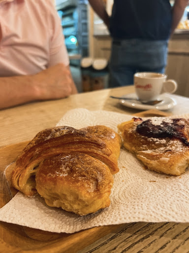 What a gem this place is! I came to this place at around 8 in the morning on a Saturday as another breakfast place I was planning on going to was closed during my stay in Pisa. I had some trouble communicating as I don't speak Italian, but they brought someone who could speak English to talk to me and checked the ingredients in the croissant to make sure it didn't have cow butter as I'm vegan. I ordered the plain croissant, and my husband ordered the croissant filled with red fruits jam with espressos, and it was the best breakfast we had in Italy (which is a tough thing, since food in Italy seems to be great everywhere I'd go). The croissants come with a thin sugar coat on top and taste really fresh with the right amount of softness. The espressos were also great, probably the best I ever had. The service was really quick and the staff was extremely friendly. The place is very calm with both indoor and outdoor seating, and it seems to be a regular go-to place for locals. I really recommend coming here for breakfast during your...
