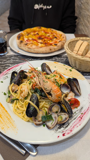 Noteworthy is that the seafood spaghetti were at only ~13,50€.