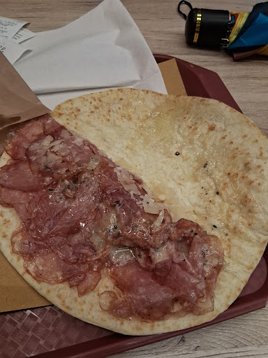What shall I say? I just LOVE this place. They make the best piadina of the whole region, I think. It's a tiny place, so when you cone, you need to order at the cashier, and they will give you a number. You can go wait outside, if you'd like. When you see your number on the display, you pick up your food, and can go eat at the tables outside, if there is place, or at the monument in Pzza Della Berlina (which is right at the end of the little street via Rigattieri), or on the Arno shoulder, where people usually sister and talk or eat take away food or ice cream. Try to have something you will never find elsewhere (this store has incredible ingredients!). If I could, I would eat there...