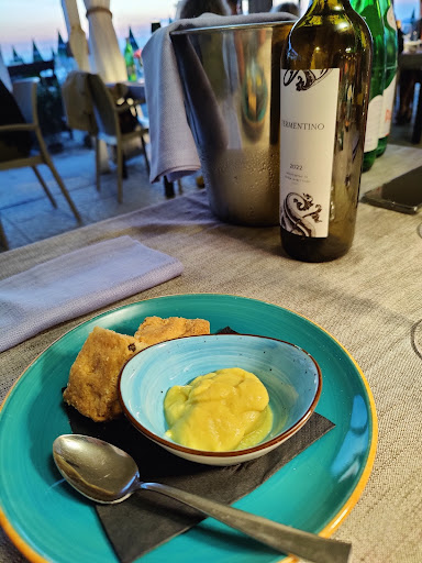 Ma oltre alla location la cucina è stata impeccabile. Non è un fastfood e tantomeno un ristorante cheap, paghi ciò che mangi con un costo di 45€ a persona per 2 portate, vino, acqua, dolce e caffè. Un prezzo che ormai si può definire medio ma con piatti di qualità. Abbiamo ordinato come prime portate 1 tartare di mazzancolle, 2 piatti di alici fritte, tagliolini al pescato nostrale; per la seconda portata 2 fritti misti, maccheroncini con ragu di polpo e tonno con crema di pecorino fave fresce e aneto. Tutto molto buoni, fritti non pesanti, presentati bene e sfiziosi, pasta cotta alla pefezione con sughi ben saporiti e le pesce fresco (mazzancolle ottime, fresche e delicate). Concludere abbiamo ordinato 2 dessert versilia e una panna cotta con marmellata di fichi e scaglie di mandorle. Perdonatemi, non sono appasionato di vini, non vorrei sbagliare ma si dovrebbe trattare di una bottiglia Gagà - Trebbiano (I...