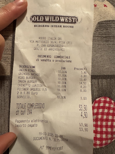 i can give the old wild west restaurants a 5 stars feedback of each one of the plenty locations in Italy , really i like the food and the atmosphere and the service .the prices is also reasonable . the decorations are really unique in each of the location though is al about the old western life but it's unique in each restaurant ,ive visited 6 different locations so far and i love each one of them , the menu is so wide , of course you'll find some modern food like smashed burger which i don't think it was even knowing on the time of the cowboys and Jesse James 😂 but i like it really cozy place to go to eat and the food are delicious and the stuff service are great . compare to Macdonald's tje old wild west is far far more better 5 stars feedback ,...