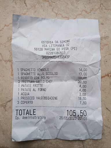 Read morePrima esperienza e locale trovato leggendo le varie recensioni per "Ristoranti di pesce della mia zona"; mi hanno incuriosito le varie critiche ed elogi che ho letto dai precedenti commensali quindi, perché non provare ?! Location molto carina nella marina omonima della mia città. Non apprendendo ulteriori informazioni nel sito web dell'Osteria ho prenotato a prescindere. Il personale di sala è stato molto gentile e sorridente, portando l'antipasto per Lei ed i primi per noi solo dopo pochi minuti la comanda (d'altronde s'era arrivati in anticipo e prima dell'apertura del ristorante); i primi sono stati una sorpresa, molto saporiti e differenti da altre Osterie / Ristoranti provati in zona per la sola "omonimia del piatto"; la freschezza degli ingredienti si sentono e persistenti nel palato, con una alternanza di dolcezza ed acidità degli agrumi che mi ha intrigato e dilettato (riso, gamberi, agrumi e stracchino); gli spaghetti allo scoglio sono stati molto graditi e mio padre non ha obbiettato o proferito parola (quindi, conoscendolo, sono stati apprezzati e molto!!); indicandoli altri Ristoranti per comparazione, mentre gustava il piatto, ha annuito che era il migliore provato (ordina sempre gli spaghetti allo scoglio ;) Una sola nota dolente è stato per il secondo, le due portate differenti, non sono arrivate nello stesso momento ed il ritardo del fritto è stato "un pò troppo" rispetto alla tagliata di tonno (ovv. è prioritario che le portate arrivino contemporaneamente a tutti i commensali). La tagliata di tonno è stata la migliore che ho gustato e non ha niente a che vedere con le precedenti di altri ristoranti; quest'ultima è di un "altro livello" (superiore) e certamente ritorneremo per gustare altri piatti del menù. Dimenticavo il Fritto dello Chef, anche questo molto gradito (di più) ed il consiglio della cameriera nel farci aggiungere le acciughe è stata molto azzeccata. Fritto certamente da provare (per me). Prezzi nella media per il...