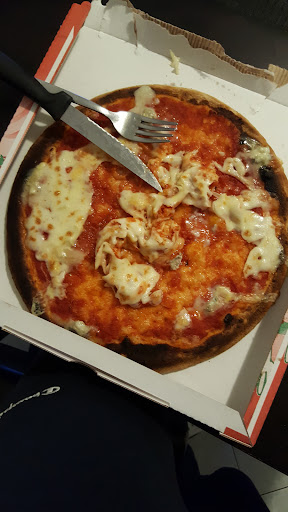 Read moreOttima pizzeria da asporto, non quella generica ma gestita da persone che puntano alla qualità. Ho avuto modo di andarci mentre ero al seggio, e ho scambiato due parole con il pizzaiolo, che mi ha spiegato come mai certe pizze lasciano tanta sete e altre (tra cui la loro) no. Pizza davvero squisita, un po' croccantina, condita bene, il meglio è decisamente la base, che loro fanno (così mi ha detto) con 24h di lievitazione e 24h di maturazione e lievito madre centenario (parole loro). Prezzi leggermente sopra la media ma ampiamente ripagati dalla qualità del prodotto. Io li consiglio...