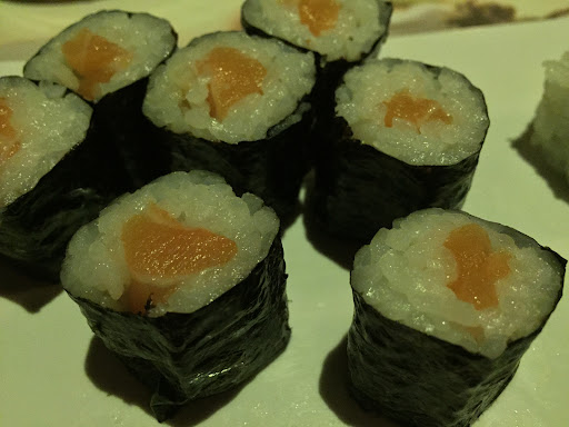 Mi mancava comunque recensire i posti "interrati". Li avevo già provati in un altro a.y.c.e. e speravo fossero ugualmente e agilmente accessibili; il tavolo sarà stato a massimo 50 centimetri da terra e il suo perimetro coincideva con il perimetro delle "sedute". In poche parole che se sei alto più di 1.80 per sederti ti devi prima sdraiare completamente per terra e strisciare sotto il tavolo. Per fortuna di questi locali che la maggior parte di noi ne capisce di sushi quanto gli americani con l'ananas sulla pizza. Per concludere mi sono sentito preso in giro, dato che era anche il servizio serale che costa il doppio del pranzo.