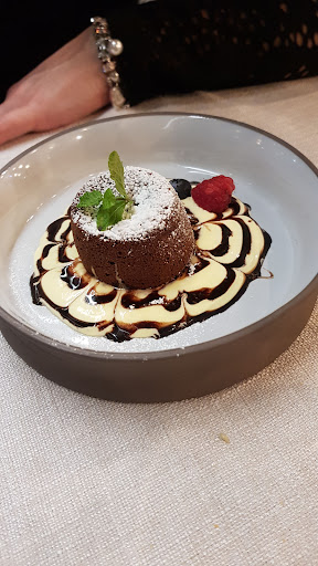 Cenetta tranquilla di domenica sera. Prenotato e già al telefono gentilissimi (risponde hotel san Ranieri). Arrivati nel luogo che si trova diciamo dietro l'ospedale di Cisanello notiamo subito l'hotel molto moderno con accanto il ristorante. Entriamo e subito notiamo molto gusto nell'arredamento e nel contesto. Davvero molto suggestivo. Ci fa accomodare il maitre e devo subito notare la sua gentilezza cosa che apprezziamo molto. Scegliamo dal menù due antipasti, 2 secondi, 2 contorni, 2 dolci 3 calici di vino acqua e 1 caffè. Spesa totale 110 euro. Antipasti ottimi veramente e decisamente abbondanti! Ottimo! Arrivano i secondi che abbiamo scelto per via del particolare forno che utilizzano (praticamente ci spiegano che è chiuso e cuoce con tutti i sapori). Effettivamente da alla pietanza un buonissimo sapore. (non ricordo il nome del forno). Ad ogni modo voglio fare presente che inizialmente sul menù ci sono un sacco di nomi strani che onestamente servirebbe un libro di cucina per comprenderli e allora chiediamo cortesemente una piccola spiegazione. Devo dire che il ragazzo che ci ha spiegato è stato super gentile! Dolci e gelato...