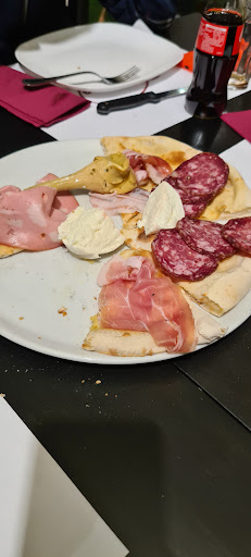L'antipasto di salumi e formaggi con la schiacciatina sembra essere ben preparato e gustoso, il che lascia presagire che l'attenzione ai dettagli sia una priorità nella pizzeria.