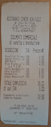 Friendly staff and very affordable! We ordered a variety of items to test out the menu. Big fan of the chicken with vegetables plate (pollo con verdure alla piastra), shrimp lo mein (Tagliatelle con verdure e giamberi), soy bean noodles with spicy meat (Spaghetti di Soia piccanti con carne) and dumplings (Ravioli di carne al vapore). I also tested it out the chicken corn soup (Zuppa di mais con pollo) and it was good but needed a little more flavor. They also offer you sauce for your dumplings, sweet and sour, and hot chili oil. Overall a good experience. If you are looking for Chinese takeout close to Tirrenia,...
