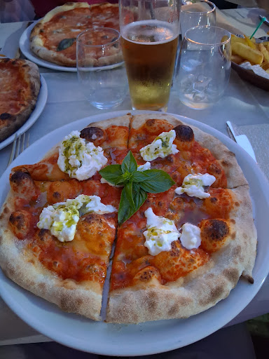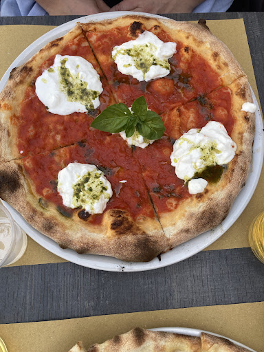 Siamo arrivati qui su consiglio di un amico. Abbiamo trovato un'atmosfera accogliente e uno staff cordiale che ci ha fatto subito accomodare ai tavoli all'esterno. Clientela varia dai giovani alle famiglie. Io, mia moglie e tre bimbi abbiamo tutti scelto la pizza con annesse patatine fritte per i piccoli. 5 Pizze vari gusti, 2 coca cola, 2 birre, 2 acqua con servizio al tavolo per soli 57 euro...CONSIGLIO vivamente questo posto per la qualità dell'offerta che riserva al cliente considerando i prezzi richiesti. Suggerisco di prenotare e di assaggiare la Margherita 2.0....con pomodoro, stracciatella e salsa di basilico......