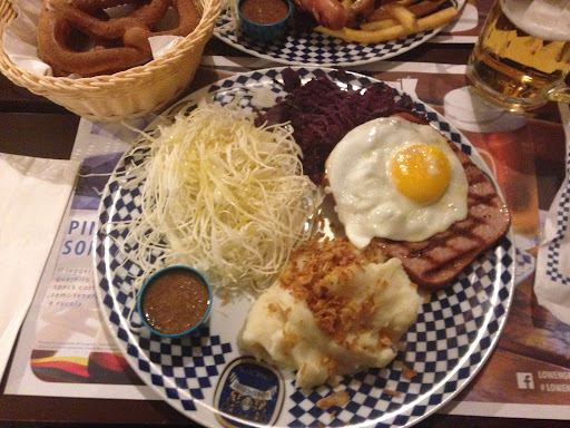 Read moreLocale ampio, luminoso e con facilità di parcheggio posto nella zona industriale di Pistoia. Oltre ad una grande sala interna con angolo giochi per bambini, ha anche una veranda esterna molto comoda nelle sere d'estate. Lo stile ed il cibo sono bavaresi, con qualche divagazione nel menù pizza e kinder/baby che noi non abbiamo mai assaggiato. È presente anche un menù senza glutine. Il menù classico bavarese ha molte portate tradizionali con stuzzicheria, antipasti e taglieri, insalate, primi piatti e degustazioni bavaresi tra cui si trovano numerosi tipi di grigliate di carne in cui sono i würstel a farla da padrona. Altri taglieri con formaggi e prodotti tipici, fritti e patate in vari condimenti. La scelta è piuttosto varia, la qualità del cibo nella media, con un plauso alla novità dei sapori, il servizio attento e veloce con possibilità di prendere piatti degustazione da assaporare in gruppo. Buona la scelta di birre da abbinare anche ai dolci che, invece, non abbiamo trovato speciali. La torta Sacher, in particolare, è risultata secca. I prezzi sono medio alti: in due con un piatto a testa, un paio di birre e di dolci la media è di 22/24 euro a persona. Di tanto in tanto...