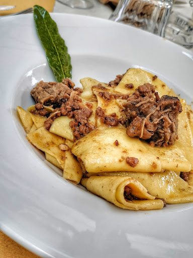 I had lunch with a friend, a stone's throw from the cathedral of San Zeno (the cathedral of Pistoia) in the small Piazza della Sala in the historic center we sat outside, given the beautiful day at the end of February, we tasted Tuscan dishes pasta with duck sauce, lamprey, Tuscan tripe, cheesecake with berries, obviously all accompanied by an excellent glass of red wine... all good and excellent!! thanks to the staff, kind and attentive to customers I will be back soon to taste...