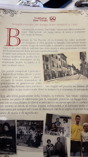 Read moreCi sono le tovaglie vere, quelle di stoffa coi classici quadretti, e i tovaglioli pure di stoffa come ormai non si vedono che nei ristoranti di lusso; il cliente può usufruire di due bicchieri: come si usava un tempo, quello più piccolo è per il vino e quello più grande per l'acqua. Il menu, battuto certosinamente a macchina ogni mattina, è sempre assai ricco e variato. Ma quel che sorprende davvero è l'estrema professionalità dei gestori: la famiglia Marchettoni gestisce la trattoria San Vitale dal 1964, allorché rilevò la licenza da tale Torrigiani, e i risultati si vedono, giacché, piaccia o meno, ben difficilmente ci si improvvisa ristoratori. Niente salamelecchi fuori luogo - certo nessuno ti chiederà trepidante se il piatto che appena hai consumato era di tuo gradimento - ma precisione ed estrema celerità nel servizio, pulizia, qualità nella semplicità e, last but not least, prezzi da vera trattoria. Piatti difficilmente reperibili altrove come le zucchine marinate o il fegato alla veneziana sono all'ordine del giorno, ma - questo è il bello - anche un'apparentemente banale fettina panata mantiene sempre una sua irriducibile dignità. Se pensate come Stravinskij che una vera tradizione non sia la testimonianza di un passato concluso ma una forza viva che anima e informa di sé il presente, la trattoria San Vitale fa senz'altro per voi....