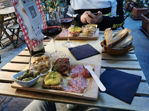 Read moreDopo anni che lo puntavo ho fatto tappa al Vitium, locale/enoteca molto attraente appena al di fuori dal comparto Sala. Si entra per un calice e si prende sicuramente un piattino data l'offerta invitante di pietanze non scontate ed invitanti. Prese le schiacciatine e la polenta con lo spezzatino... Molto molto buoni ! Vino speciale e ben consigliato dal proprietario che riesce a carpire i tuoi gusti ed accontentarti! Calici felicemente abbondanti. Ambiente rilassato. Spesa, considerando che c'è anche il coperto, un pochino sopra il valore percepito ma ci torno...