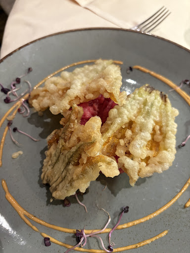 Read moreAbbiamo passato una piacevolissima serata. Il locale si trova a due passi dal lago di Piverone ed uno dei ristoranti della Tradizione Canavesana, un'associazione di ristoratori che valorizzano il territorio e le specificità del Canavese. Sono stato subito colpito dai tavoli tondi e soprattutto da come hanno disposto le sedie in modo molto particolare e molto caratteristico, che già denota un’attenzione per l'accoglienza e per i dettagli. Il menù in linea con la tradizione con qualche ingrediente che rende i piatti un po' più "cool". Eravamo in otto e abbiamo mangiato un po’ di tutto (con grande piacere della cucina) io ho preferito assaggiare il le specialità sul conegone, il pesce di fiume del lago di Viverone e che l’ho preso come antipasto in carpione (sotto aceto, cipolle, salvia e verdure, tipico piemontese) e poi l’ho preso come secondo fritto con il persico con le gonne Persico molto molto buono. Altri commensali hanno mangiato invece la battutala di fassone con fiori di zucchine in tempura, gli gnocchi alla curcuma con menta e sopek. Anche sui soldi non ci siamo fatti scrupoli: pesche ripiene (buone) una porzione di zabaglione (veramente ben presentato e davvero tanto), sfoglia di mele con crema e galato (molto buona e simile alla tarte tatin), pure il semifreddo al torrone e lampone. È stata una piacevolissima serata. La cucina si è dimostrata all’altezza dell’aspettative. Le porzioni sono anche giuste l’unica cosa che su cui magari si potrebbe migliorare e sulla velocità, perché abbiamo aspettato un po’ tanto (complice anche che abbiamo preso mille cose diverse). Rapporto qualità prezzo buono. Da ritornare