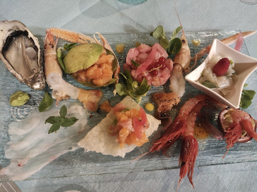 Read morePosto caratteristico, davvero carino… Appena arrivati siamo stati accolti da Alessio che ci ha fatto accomodare e ci ha coccolati per tutta la sera, consigliandoci e spiegandoci i piatti dello chef, secondo me stellato, vista la qualità e bontà delle portate. Abbiamo mangiato divinamente! Io ho preso un crudo di mare che non avevo mai assaggiato prima, di una qualità e freschezza assoluta, per non parlare della presentazione eccezionale, si intuisce che c’è una ricerca e dedizione appassionata. L’antipasto misto che ha preso mia moglie, invece è un percorso di sapori del nostro mare. Già dopo gli antipasti avremmo potuto chiedere il conto per l’abbondanza, ma siamo di buona forchetta e siamo andati avanti… Risotto da 10 e lode, buono, bello a vedersi e porzione abbondante.. Linguine con mazzancolle e liquirizia da premio oscar. Frittura di calamari leggera e delicata, pesce spada gratinato con frutta secca squisito, insomma tutto perfetto, anche il vino che ci è stato consigliato, un madre goccia, si sposava perfettamente con quello che abbiamo mangiato. Infine il conto è stato onestissimo, direi che per la qualità e la quantità delle portate, anche sotto la media. Davvero complimenti ai ragazzi ed allo chef di questo gioiello di gastronomia, ci torneremo...