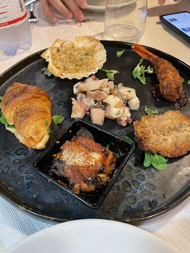 Read moreDunque dopo aver letto le recensioni e dietro suggerimento di un conoscente abbiamo cenato in questo "osannato" ristorante. Premetto che siamo amanti del pesce quindi giriamo molti ristoranti. Prima cosa, in un ristorante di pesce in una località marina calamari, seppie e polipi sono surgelati, e già cominciamo male. Crudo di mare 20 euro, minimo per 2 persone, (quindi 40 euro), quello che però proprio non capisco è perché un piatto di pesce crudo non può essere preparato per una persona?? Posso capire se ti chiedessi un risotto (e mi infastidirebbe comunque), ma un piatto di pesce crudo puoi e DEVI farlo anche per una persona altrimenti penso che sei un ristoratore "para..."! Veniamo ora ai famosi e plurirecensiti Riavoli di Cernia e Paccheri al ragù di Spada....so di aver mangiato i ravioli ripieni di cernia perché questo diceva il menù, il ripieno x me poteva essere anche di ricotta di mucca vista l'assenza totale di sapore, conditi con una sorta di cremina guarnita da 4/5 gamberi decisamente troppo cotti. I paccheri (dalla consistenza gommosa) con il ragù di Spada, sembravano conditi con un sugo al tonno naturale, insipidi. Secondi, tagliata di spada rucola e parmigiano più grigliata mista, piatti senza carattere e sapore, alla fine ti rimane un sentore lontano e slavato di pesce. In tutto questo, un servizio assolutamente distaccato e per nulla coinvolgente anzi sembrava quasi scocciato dalle nostre domande, non ci ha minimamente invogliato a provare i piatti. La location è carina e molto piccola, il motivo per il quale risulta essere quasi sempre pieno, e poi lenti...lenti...lentissimi. Dolcis in fundi la cosa più scellerata di questo ristorante è l'assenza di dolci, ma io dico lo sanno anche i bambini che quello che ti fa ricordare un buon ristorante è il suo dessert...proprio non ci siamo. Non mi soffermo sul discorso prezzo perché sono e resto una Signora. Comunque per curiosità, vorrei sapere le persone che dicono che qui hanno mangiato benissimo cosa sono abituate a mangiare,così ripeto giusto per curiosità. Il mio epilogo è se volete mangiare in questo ristorante fatelo pure ma non vi aspettate chissà cosa, a Pizzo c'è molto ma molto di meglio soprattutto cercate più...