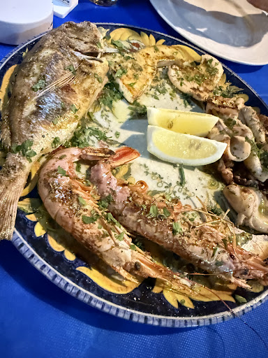 Setting was nice, it was a warm windy night. The house red wine was not good, it was off but we chose to not complain. That should have been our clue. We ordered an antipasti, primi and secondi to share for the 2 of us. We pointed to what we wanted and clarified our order. I tried to order in Italian but he kept speaking to me in English so I figured he knew my language. I think I was wrong. We waited a long time and then our antipasti and primi came out at the same time. My carbonara was tasty but cold and the octopus was just ok We told the waiter when he asked but I don’t believe he understood. Then our swordfish came out and it was so overcooked I couldn’t eat it. They overcharged us and claimed we ordered the secondi of Octopus not the antipasti. Why then would we get it before the other secondi? The octopus was 28 euro and they refunded us 14. Worst euro we...