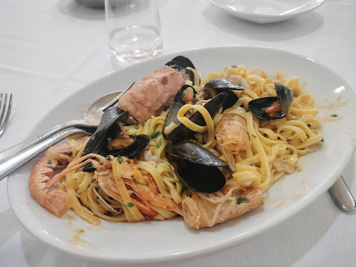 Ambiente un po’ vecchio stile, dalle pareti gialle piene di quadri raffiguranti - ovviamente - mimose. Servizio silenzioso e serioso (diciamo che un sorriso non guasterebbe) ma efficiente: la cameriera passa tra i tavoli con un carrelletto che trasporta antipasti ed enormi primi piatti. Antipasto misto freddo e caldo saporito e vario: ne basta uno in due (o due in tre) se non ci si vuole saziare subito. Focaccia (non inserita nel conto finale) croccante e calda (un po’ troppo salata ma gustosa). Disponibile solo la sera. Primi piatti super abbondanti: ne abbiamo presi due in tre (se siete in due ne basta sicuramente uno). Mezzemaniche con astice più buone degli spaghetti alle vongole (sapore più delicato ma comunque buone), con un sughetto spaziale. Dolci trascurabili (confezionati). Servizio non sempre veloce, ma considerati i prezzi super onesti vale sicuramente la sosta per una buona cena di pesce. Abbiamo pagato 30€ a persona, incluso anche vino e gelato finale (buono il gelato alla crema, affogato al whiskey nel...