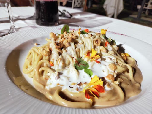 Read moreHo avuto il piacere di cenare in un ristorante che, dal punto di vista della location, merita davvero un plauso. Immerso in un ampio spazio verde, con giardini ben curati e un’atmosfera che invita al relax, il locale è perfetto per chi cerca una fuga dalla frenesia quotidiana. Purtroppo non posso dire lo stesso per il cibo, almeno per il momento, perché mi riservo di dargli un’altra chance. Sebbene le aspettative fossero alte, vista la qualità della location e la cura del servizio, la cena non ha soddisfatto appieno le mie attese. Se la location è sicuramente un punto di forza che mi invoglia a tornare, il mio voto finale sul cibo è di 7 su 10. Il Tagliere misto di salumi e formaggi, insalate fredde, zuppe calde e sfiziosità varie (20,00 euro) è un classico della tavola italiana, quindi semplice e buono, il Filetto di cervo in salsa (un fuori menù di cui non ricordo il prezzo), ben abbinato con la salsa di accompagnamento, è stato tenero e delicato, mentre la Guancia di manzo semi-glassata alla cannella (20,00 euro), consigliata da una cameriera come carne particolarmente morbida da sciogliersi in bocca, era tutt’altro che burro, l’ho trovata infatti veramente difficile da masticare, fibrosa e troppo soda (forse per un problema di cottura). Invece il Cappuccino dello chef, come coccola di fine pasto a 7,00 euro, è stato un’alternativa gradevole al caffè. Potevo far riportare indietro il secondo di carne? Ragionevolmente sì, sarebbe stato corretto, ma non me la sono sentita di...