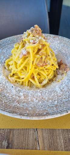 Read moreLe bellissime vibrazioni sono date dal personale(dal banco alla cucina), che con gentilezza e simpatia ti accolgono e ti fanno sentire a tuo agio. Abbiamo provato la carbonara tradizionale e la variante al pistacchio... Entrambe favolose. Ringrazio nuovamente il personale che ci hanno coccolato. Rapporto qualità-prezzo buono, con 15 euro a testa abbiamo preso un aperitivo con stuzzichini, e un primo più che abbondante. La location è di classe, anche se un po' "freddina" probabilmente deve ancora...