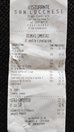 Read moreOur visit to San Lucchese was a disappointment. The food is mediocre and the service, well, disturbing. Only the reservation worked well online. The big terrace has a great potential and offers a nice view. It took a long time until we could order. The portions were rather small. Finally, the waiter was cleaning up the table bit by bit while some were still eating, not saying a word but appearing shoulder to shoulder out of the blue. Getting the bill also took some time again and no one told us that we were supposed to pay at the desk inside. The cover charge is 3€ and the parking is in the back of the building. So it's quite a walk. And bring your...
