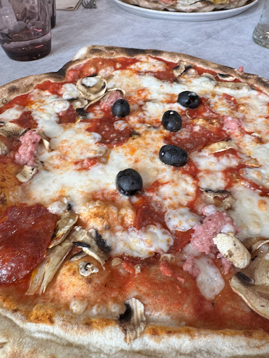 Read moreEin nettes und authentisches kleines Lokal neben dem Supermarkt.Innen ist es hell und sauber. Wir hatten Nudeln mit Steinpilzen, Pizza und Fisch.Für die Nudeln würde ich 4 Sterne vergeben, da sie lecker waren, aber nicht allzu sehr nach Steinpilzen schmeckten.Außerdem hätte ich mir dazu richtigen, frisch geriebenen Parmesan anstatt Grana Padano aus der Tüte gewünscht.Die Pizza war dünn und sehr, sehr lecker, daher würde ich hier 5 Sterne geben.Auch der Fisch war lecker aber nicht umwerfend, daher 4 Sterne. Zum Nachtisch gab es hausgemachte Cantucci, hausgemachte Crema Catalana und warmen Schokoladenkuchen.Die Cantucci waren lecker, aber wieder nicht herausragend, daher 4 Sterne.Die Crema Catalana war sehr lecker, die Karamellschicht wurde sogar am Tisch angezündet, also eine kleine Showeinlage.Daher 5 Sterne.Der Schokokuchen war nach eigener Aussage des Restaurants nicht selber gemacht, war aber trotzdem lecker.Da er nicht selber gemacht war, bewerte ich ihn nicht. Alles in allem kann man hier lecker zu fairen Preisen essen.Die Pizza ist sehr...
