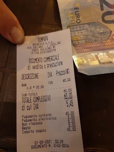 Siamo stati spennati!!! 3 bicchieri di whisky torbato (probabilmente di buona qualità) e un biscotto... Totale scontrino €20 a testa (€ 60!!!) In risposta alla sua "garbata" obiezione teniamo a precisare che prima dei tre whisky abbiamo speso umilmente €34.50 per 4 Negroni e 2 margarita. Umilmente e garbatamente gradiremmo conoscere la marca del wisky di cui lo scontrino da €60 corretto a voce a €45...