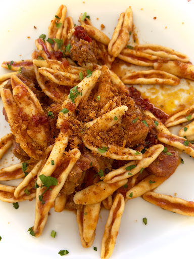 La cosa certa è che non tornerò più, perché oltre il non avere a cuore l’ambiente in cui si va a mettere il cliente, la struttura è anche bella disorganizzata! In un tavolo di quattro persone abbiamo ordinato come piatti singoli tre pizze e un piatto di arrosticini, mentre al centro delle patatine fritte e una porzione di tagliata.