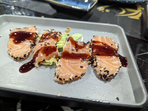 Read moreApprezzo molto la cucina orientale e mi piace provare gusti nuovi, per questo motivo abbiamo deciso di provare questo locale in quanto Fusion. Effettivamente si nota un minimo di fusione di culture in quanto non si trovano solo le classiche pietanze di cucina cinese e giapponese, ma si nota la presenza di sapori differenti (ne è un esempio il "tacos" con salmone e avocado ). Tuttavia mi aspettavo una maggiore scelta e probabilmente sarà dato dal fatto che il menù pranzo solitamente offre meno piatti rispetto alla cena. Per questo motivo non mancheremo di ripassarci di sera in quanto ci è piaciuto tutto e la modalità di prenotazione tramite smartphone risulta essere molto comoda. Nello specifico viene concesso un numero massimo di 6 piatti a persona per ordine, ed è possibile far partire un ordine ogni 10 minuti. Inoltre, è possibile controllare costantemente quanto si andrà a pagare grazie al carrello virtuale implementato nel gestionale, gestito sempre via smartphone. Locale grande ma inevitabilmente rumoroso in quanto pieno di gente (frequentato a pranzo di Sabato), ma nonostante tutto ho apprezzato la capacità di gestione delle comande da parte dei camerieri. In conclusione, ottima alternativa ai ristoranti di cucina orientale, almeno tra quelli provati nella fascia che va da Policoro a...